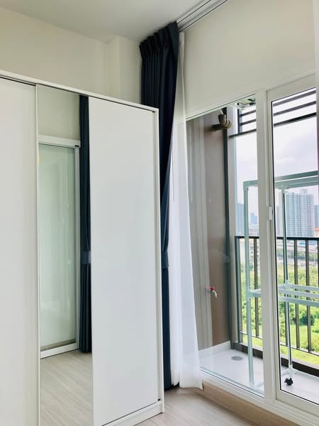 The unit is 35 sqm, featuring 1 bedroom, a versatile dressing room, and a high ceiling of 2.7 meters. Located on the 12th floor with a southern view, it is 450 meters from Bang Wa Interchange BTS station, providing easy access to the Green Line and Blue MRT Line.