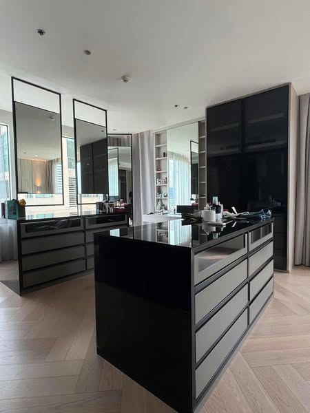 For rent: The Royal Saladaeng Condominium, located in Saladaeng Soi 1. This pet-friendly unit features 2 bedrooms, 2.5 bathrooms, and is fully furnished with 210 sqm of living space on the 11th floor, including 2 parking spots. It is equipped with high-end kitchen appliances from Miele, Franke, and Smeg, and has special wide wooden flooring.